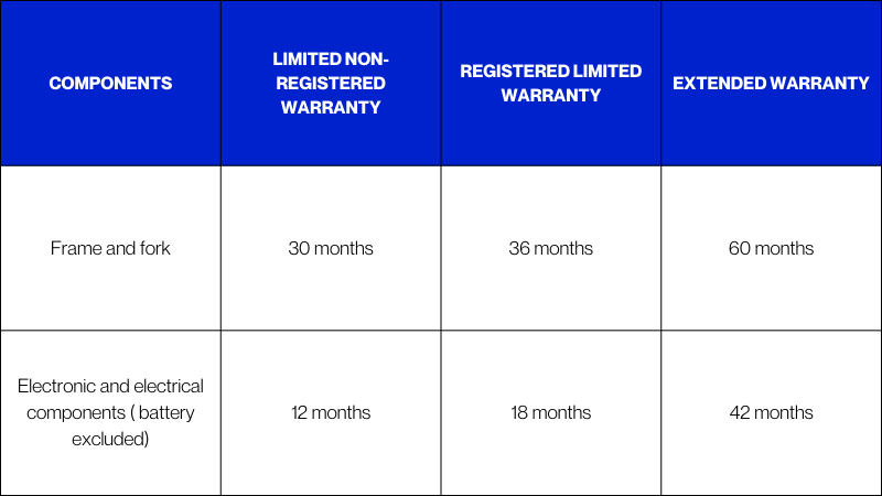 The registered limited warranty offers you an additional 6 months of warranty coverage on your e-bike or e-trike at no charge.